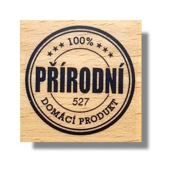 Kvalitní gumové razítko nalepené na dřevěném lakovaném špalíku, opatřené obrázkem motivu.