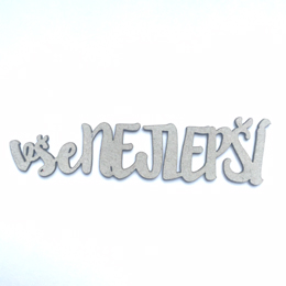 Nápis je vyříznutý laserem z 1,5 mm vysokého kartonu. Díky své výšce je ideální 3D ozdobou ve vašich projektech.