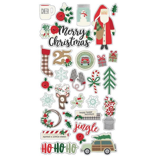 KOLEKCE: Simple Stories / Merry & Bright Kartonové samolepky pro scrapbooking a cardmaking - ke zdobení scrapbookových stránek, přáníček nebo Project Life. Velikost archu: 15 x 31 cm.