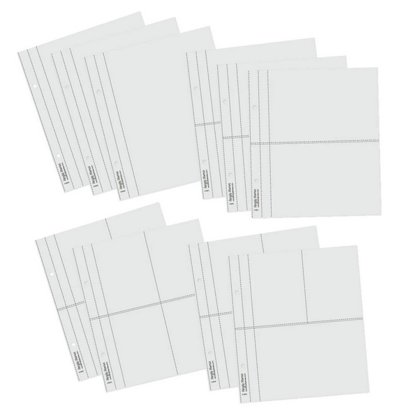 Součástí alba je 10 plastových kapes velikosti 15 x 20 cm (různé dělení - viz obrázek), celkově album pojme až 60 kapes.